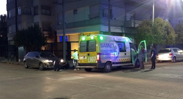 Al mismo tiempo en Pellegrini y Bolívar, una camioneta Saveiro tocó a un motociclista que conducía una Motomel Skua 200 que tras caer al asfalto sufrió raspones. Fue atendido en el lugar por la ambulancia de SAME.