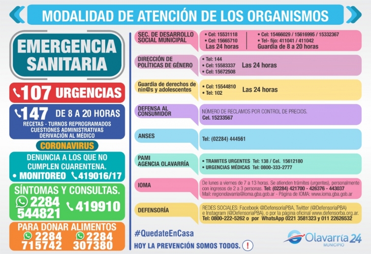 Para recibir ayuda tienen prioridad las personas que no poseen un trabajo formal, concretamente “las que más necesitan”. Desarrollo social dispuso siete líneas telefónicas para que la gente se comunique (ver cuadro de modalidad de atención).