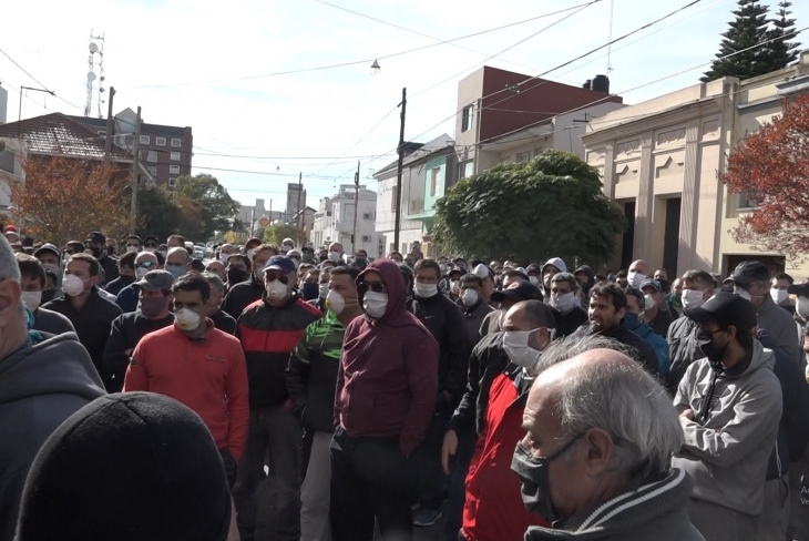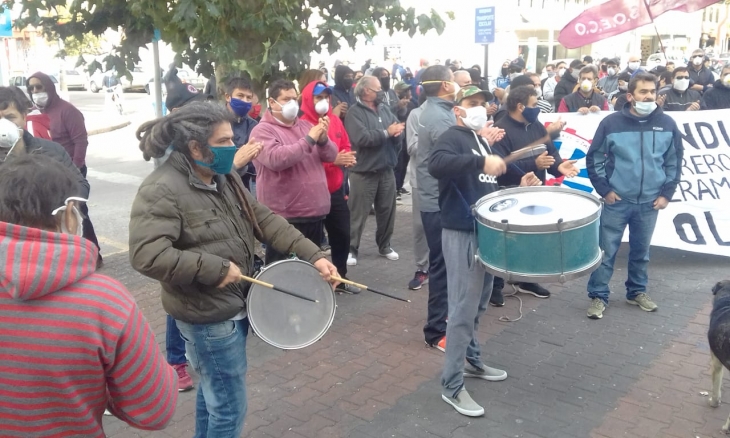 El descontento de los trabajadores conllevó una movilización hacia el Palacio San Martín, con bombos y banderas. Minutos después, los dirigentes sindicales fueron recibidos por funcionarios municipales.