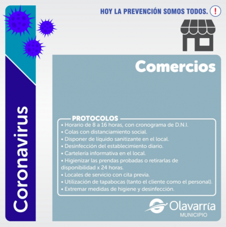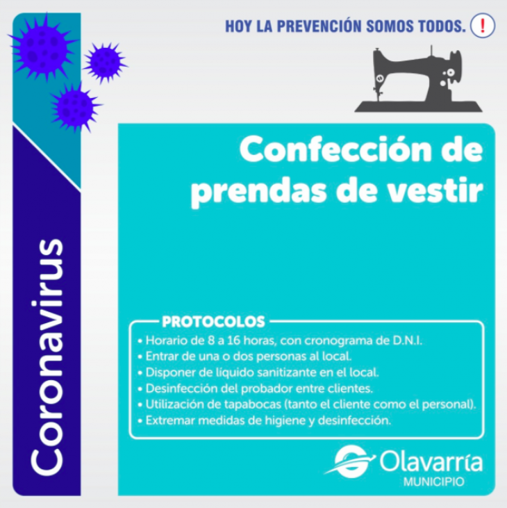 Desde el sitio web olavarriadigital.com.ar se pueden ver los protocolos completos. Por consultas se puede escribir al correo electrónico: desarrolloeconomico@olavarria.gov.ar.