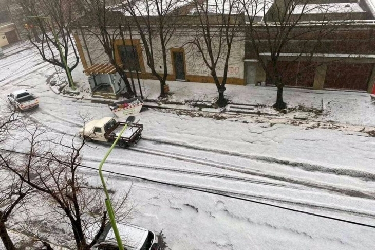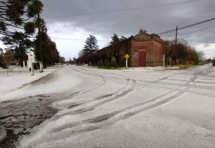 Un fuerte temporal desatado este domingo sobre el centro de la provincia de Buenos Aires afectó fuertemente a Saladillo y dejó a esa ciudad y a 9 de Julio cubiertas de granizo.