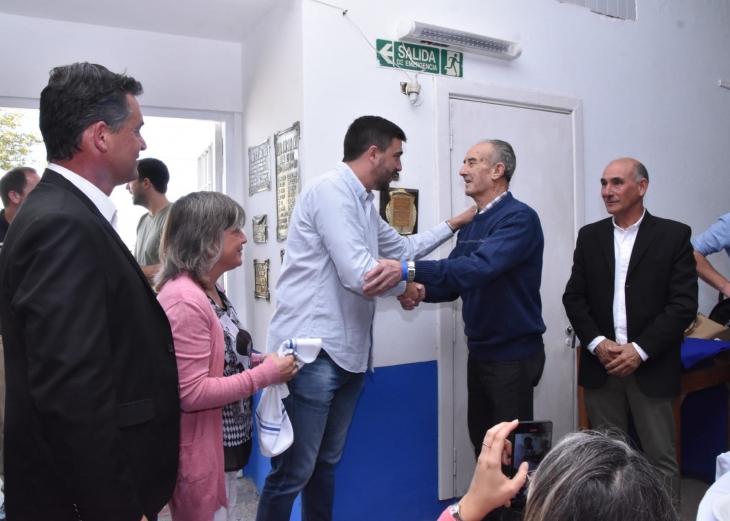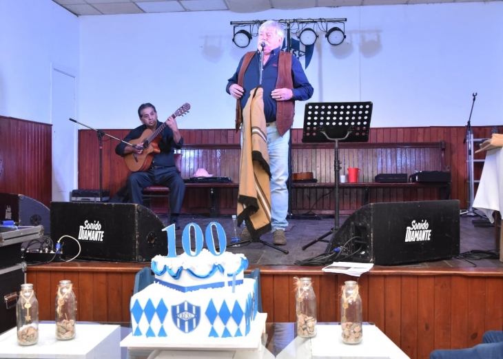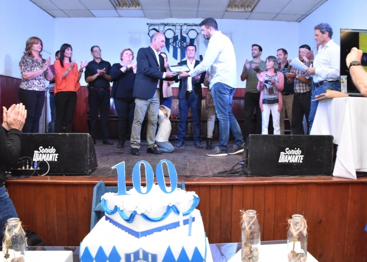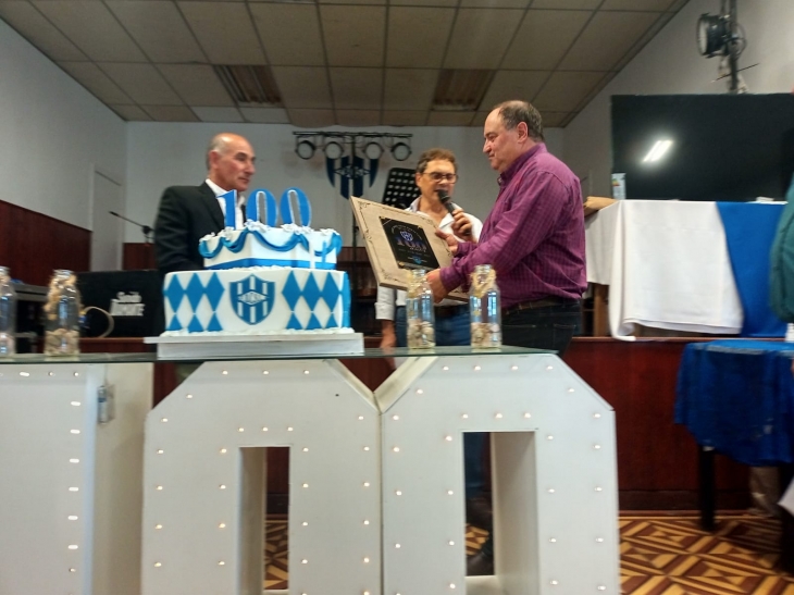 El presidente de la Sociedad de FOmento Mariano Moreno José Luis Veyrand y el titular de Pueblo Nuevo José Maceo también hicieron se presente contra entrega de un recordatorio por estos 100 años a nombre de la Unión de Clubes de Olavarría.