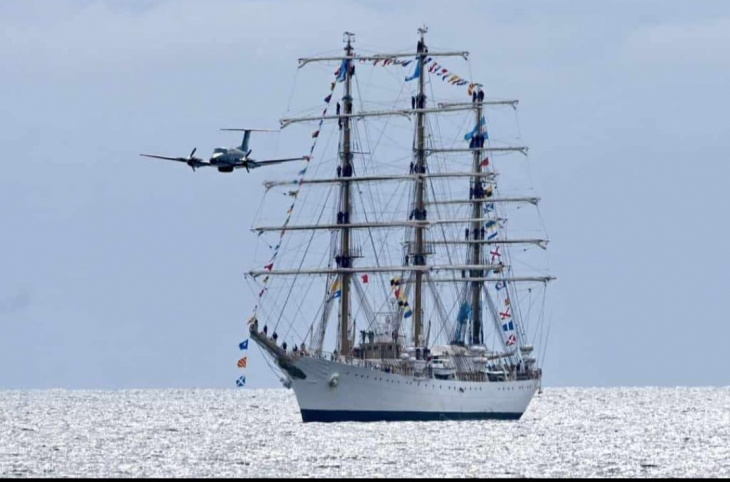 “Embajadora de los Mares”, el 23 de octubre la Fragata Libertad llegó a Puerto Madryn en el penúltimo destino antes de finalizar el 51º Viaje de Instrucción desde Buenos Aires hacia el mundo y en el aire la recibió un avión de la Armada Argentina piloteado por el comandante de la Escuadra Aeronaval N° 6 con asiento en la Base Almirante Zar de Trelew, el Capitán de Fragata olavarriense Christian Gensón.