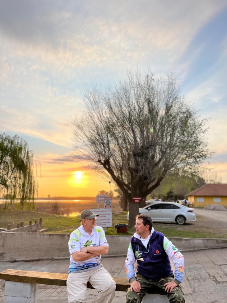 Al enterarse Pablo Di Santi, conductor de “Tiempo de pesca” junto con su padre, se contagió de nuestra idea y enseguida organizó para que hagamos una doble nota ese día en el espejo. El grupo se completó con Raúl Barera, Lucas Remusini y mi hijo Enzo.