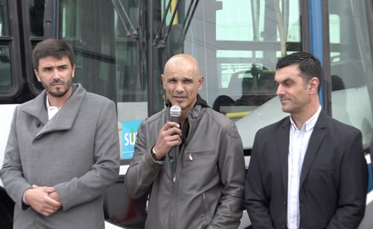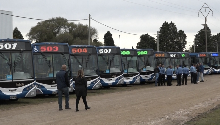 Se trata de todas las unidades para el transporte urbano de pasajeros que a partir de mayo comenzarán sus recorridos. Hubo conferencia arriba de un micro.