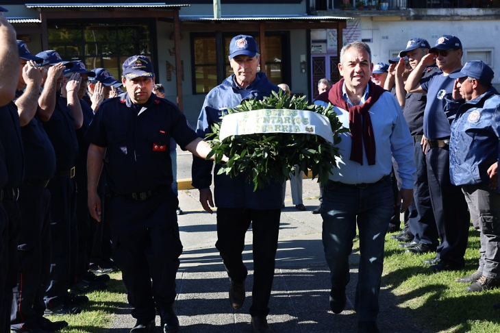 Como es tradición, también se realizó la ofrenda floral frente al monumento al bombero voluntario, el minuto de silencio en memoria de quienes ya no están, y se renovó el compromiso institucional con la comunidad y con el futuro de la institución.