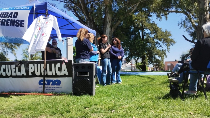 Con diversas manifestaciones de rechazo a la política educativa del Gobierno nacional se realiza este miércoles en la esquina de Necochea y Brown, en pleno Parque Mitre, la Jornada Nacional en Defensa de la Educación Pública y el Derecho Social a la Educación.