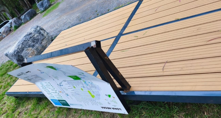 Según se informó, en condiciones aún desconocidas, desconocidos dañaron la estructura que daba soporte al mapa que brindaba información sobre Loma Negra, incluido dos circuitos turísticos, uno con eje en lo histórico y otro orientado hacia un turismo de aventura.