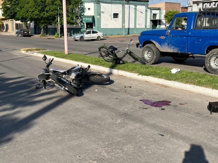 En la tarde de este miércoles en la intersección de avenida Pringles y República del Líbano impactaron una motocicleta y una bicimoto.