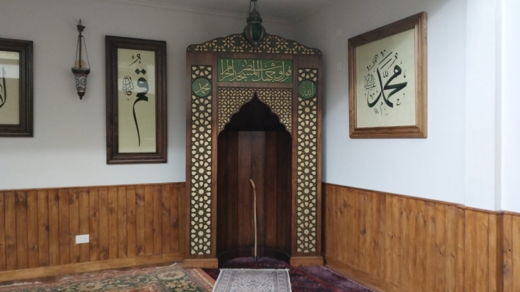 La construcción de la primera mezquita de la Ciudad comenzó hace 5 meses. Un edificio que se destaca del resto de la cuadra. Al atravesar el pórtico de madera de dos hojas, a la derecha de la entrada se encuentra el maqam, luego un amplio comedor, en el fondo la musalla (el ámbito para la oración).