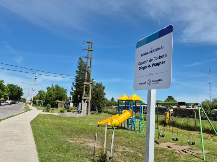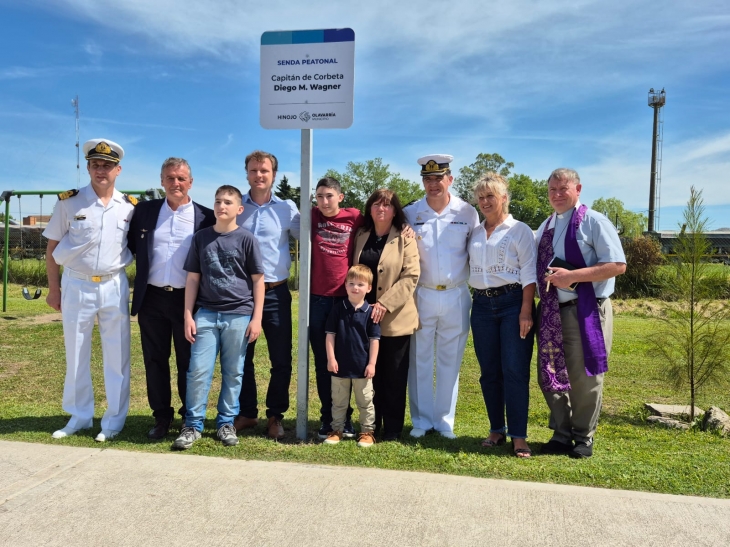 Este sábado por la mañana se realizó un emotivo y concurrido acto en la localidad de Hinojo. Se descubrió un cartel que nombra “Capitán de corbeta Diego M. Wagner” a la senda peatonal.