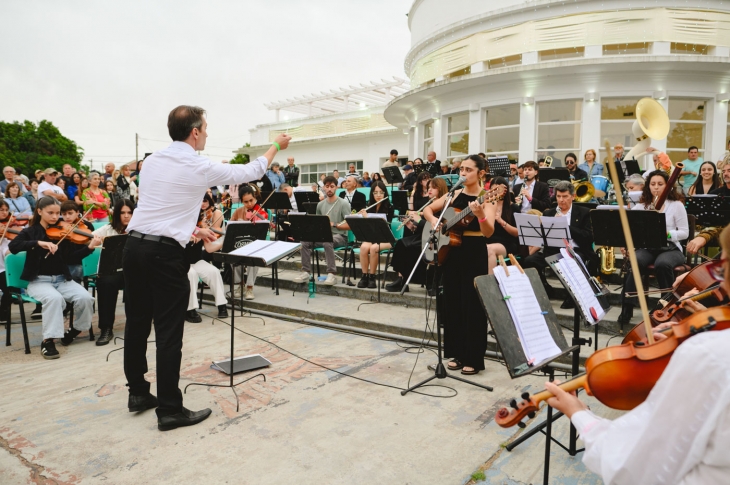 El programa se inició con la Orquesta Escuela Municipal y la Banda Escuela Municipal “Hugo Bazzano”, que se presentaron frente a la Casa del Bicentenario, cosechando los primeros aplausos e incluso ovaciones por parte de familiares o allegados que no quisieron perderse la ocasión.