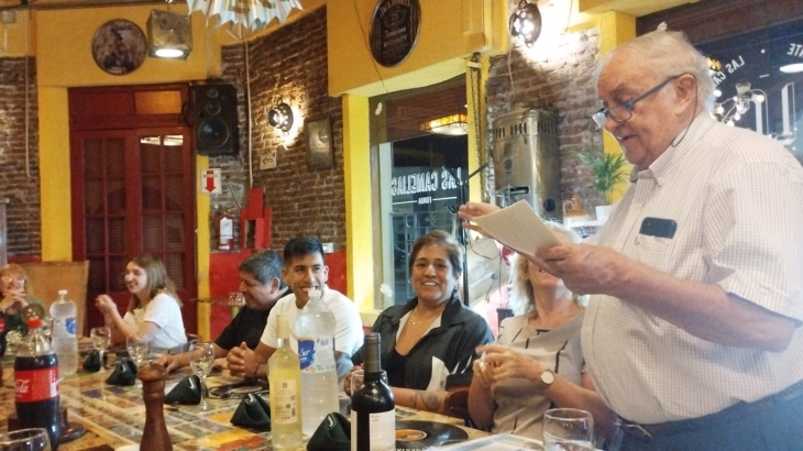 Fede Chingotto y Jorge Savi, uno de los socios fundadores de Rotary Club San Vicente, fueron los encargados de abrir la reunión izando las banderas argentina y de Rotary Club, mientras Carlos González fue en el encargado de pronunciar las palabras de bienvenida al ilustre comensal.