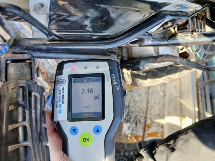 También en las últimas horas se llevó a cabo la retención de una moto debido a las maniobras peligrosas que protagonizaba el conductor, quien incluso por momentos los hacía sin tomar el manubrio. El rodado, además, no contaba con iluminación. El test de alcoholemia arrojó 2.16 g/l.