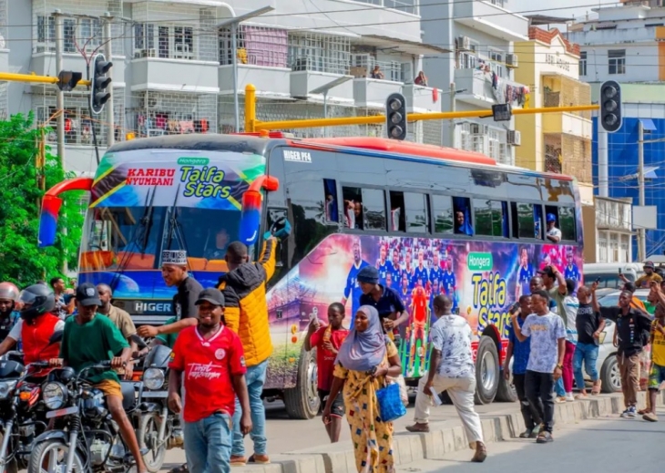 Tras la ceremonia en el aeropuertos los futbolistas, el cuerpo técnico encabezado por el olavarriense Miguel Gamondi y los oficiales de la delegación subieron a un micro especial y fueron escoltados por las calles Nyerere, Mandela y Uhuru entre una multitud enfervorizada al paso de las Estrellas de Taifa en su regreso a casa.