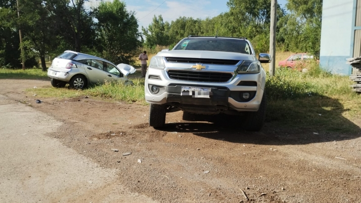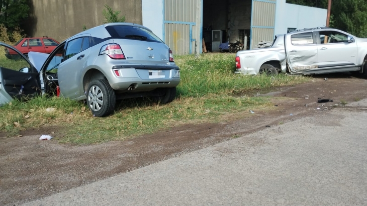 Uno de los siniestros viales tuvo lugar dentro del predio del Parque Industrial I, donde chocaron violentamente un auto Chevrolet Agile y una camioneta Chevrolet S10. Como consecuencia del impacto, ambos vehículos terminaron incrustados en una zanja.