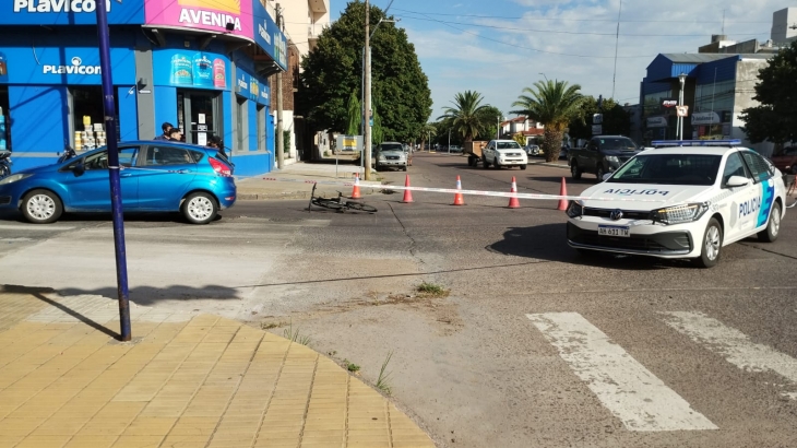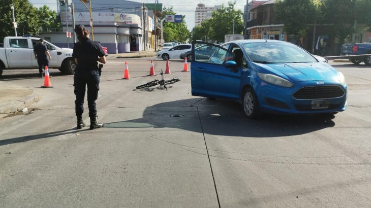 Allí un ciclista resultó con diversas heridas luego de impactar contra un Ford Fiesta y caer en el asfalto. Fue trasladado en ambulancia al Hospital Municipal para ser evaluado.