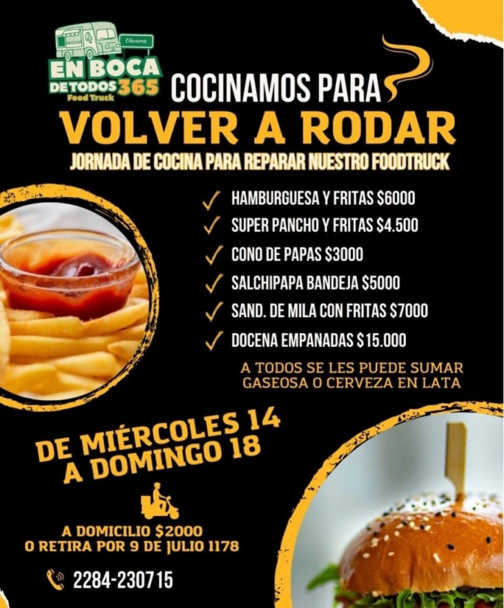 Se trata del emprendimiento "En boca de todos 365", cuya actividad depende exclusivamente del foodtruck. A raíz del vuelco, el interior del carro sufrió importantes daños en las instalaciones eléctricas, cañerías, horno y otros elementos indispensables para el desarrollo de la actividad gastronómica.