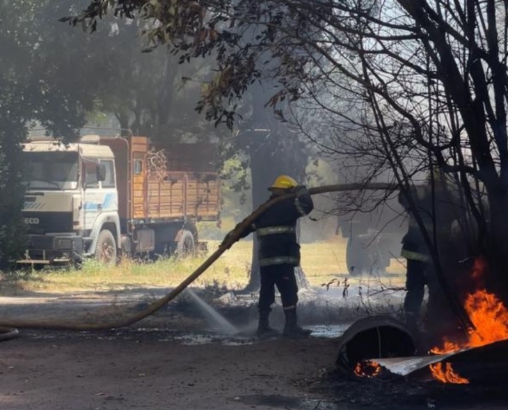 El fuego en primera instancia tomó pastizales y luego un depósito de gomas, con lo cual una densa columna de humo negro ganó rápidamente el cielo y se hizo visible desde los barrios más alejados del casco urbano.