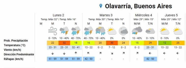 El Servicio Meteorológico Nacional emitió una alerta amarilla para Olavarría y gran parte de la Provincia de Buenos Aires.