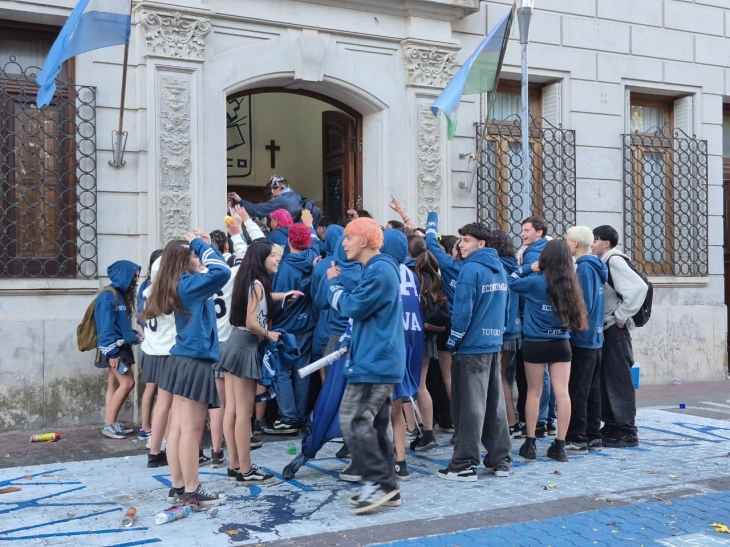 Como ya es costumbre desde hace años, los estudiantes del secundario que este año finalizan sus estudios celebraron el último primer día de clases.