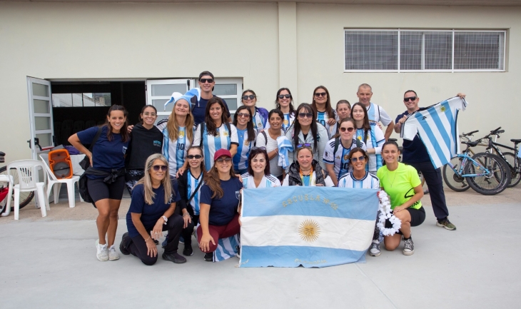 La actividad comenzó cerca de las 14:30 con la decoración de las bicicletas con los colores de la selección argentina y banderines celestes y blancos.