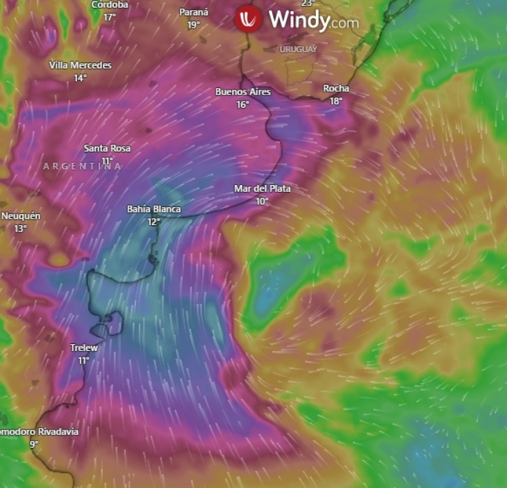 El Servicio Meteorológico Nacional advirtió que rige una advertencia por vientos fuertes, con ráfagas que podrían alcanzar los 90 km/h. Además, se espera un marcado descenso de temperaturas.