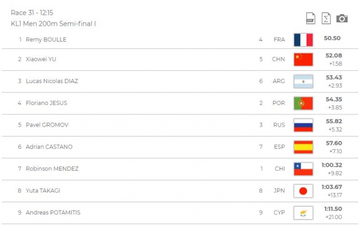 Con un tiempo de 53´43 se ubicó en tercer lugar, detrás del francés Remy Boulle y el chino Xiaowei Yu, resultado que le da toda la confianza para quedar entre los seis primeros en la final del viernes y obtener así una de las plazas que se disputan de cara a los Paralímpicos. El otro argentino en la competencia de paracanotaje, Emilio Ariel Atamañuk, llegó quinto en la serie y en la semifinal.