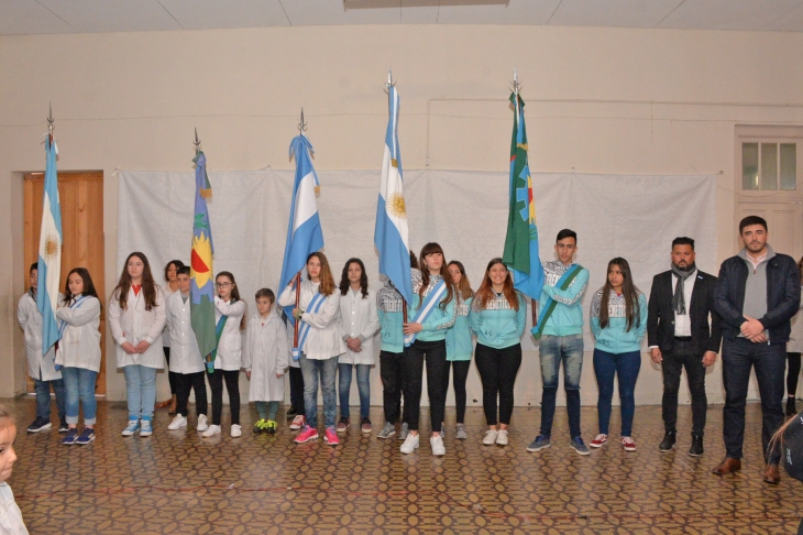 El intendente Ezequiel Galli, acompañado por la toda la comunidad educativa y funcionarios municipales y de educación, encabezó el acto que se realizó en la mañana de este lunes en el establecimiento.
