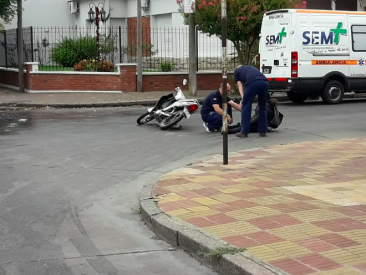 El incidente ocurrió en la intersección de las calles Alsina y Vélez Sarsfield. Si bien la mujer no presentaba heridas de gravedad, fue trasladada al Hospital Municipal.